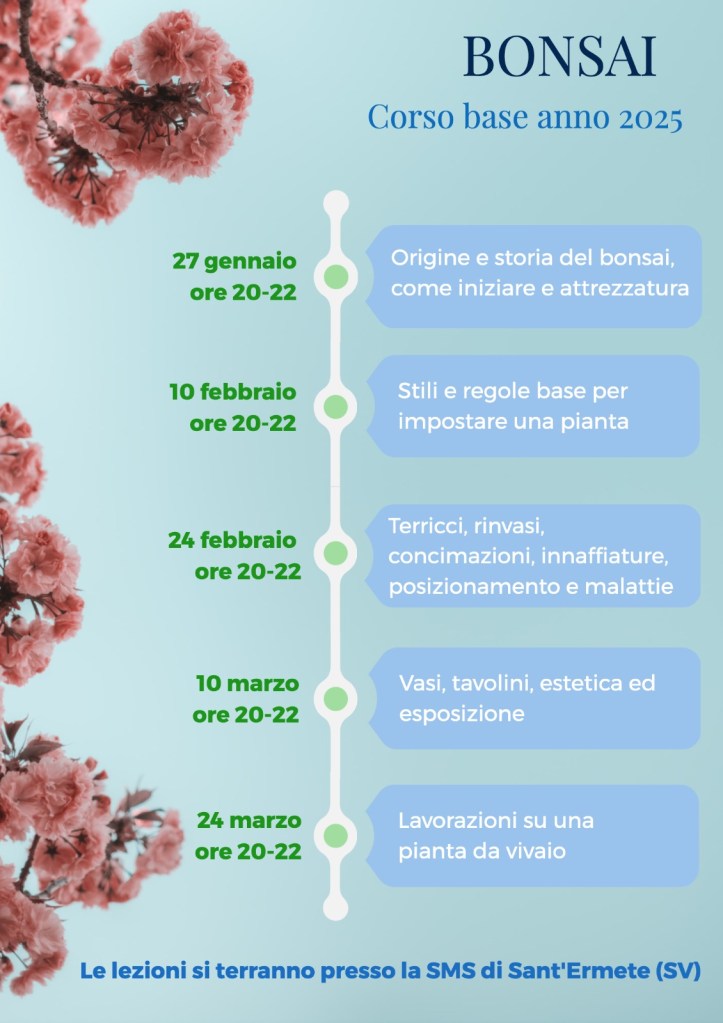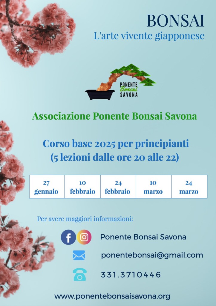 Lunedì 3 febbraio (a seguito del rinvio della prima lezione per allerta meteo) inizierà, alle ore 20, l’edizione 2025 del corso base sui bonsai!