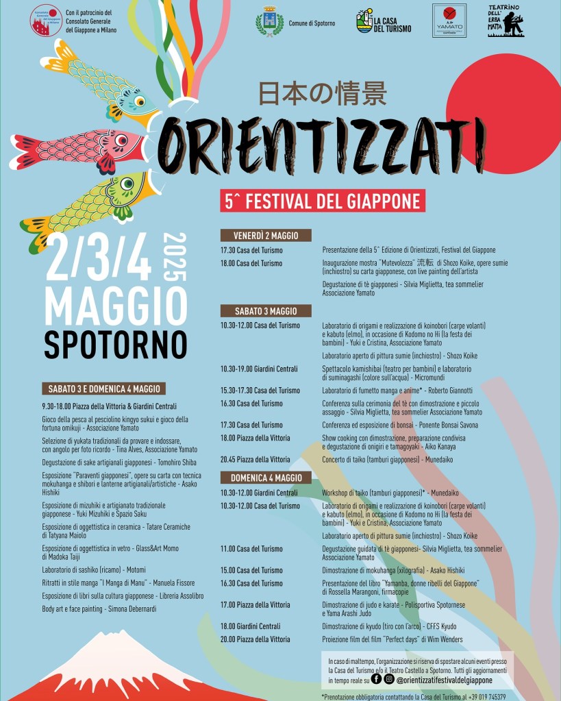 La nostra Associazione avrà il piacere di partecipare all’evento “Orientizzati”, che si terrà a Spotorno (SV), nei giorni 2, 3 e 4 maggio 2025. In particolare, saremo presenti sabato 3 maggio con un’esposizione di bonsai e una conferenza di introduzione a questa magnifica arte.